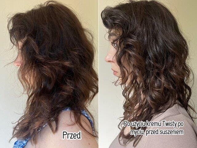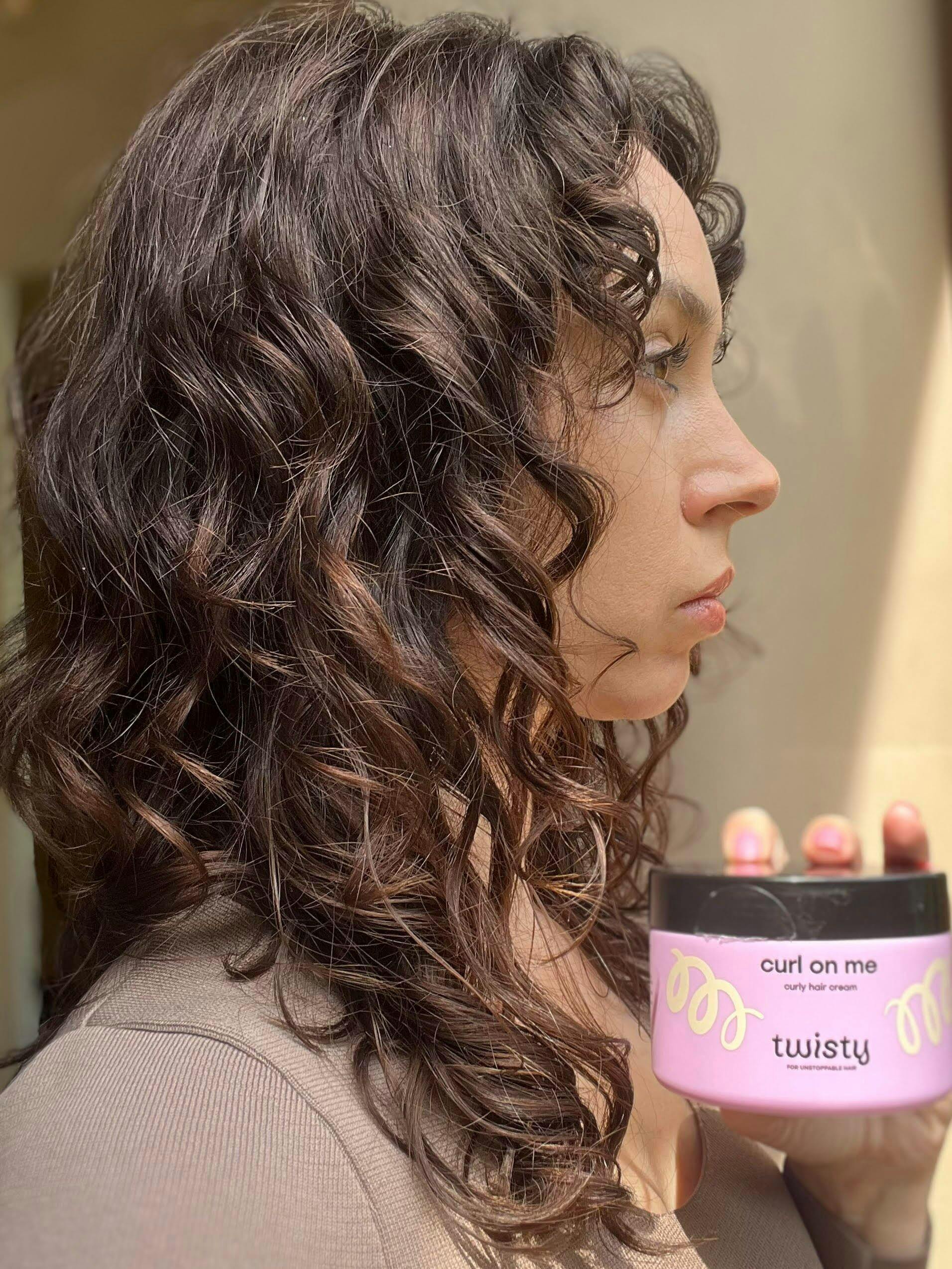 Verwenden Sie eine Lockencreme, die speziell für lockiges und welliges Haar entwickelt wurde, das zu Kräuseln neigt. Mit dem Auftragen der Creme ist die Pflegephase abgeschlossen und die Stylingphase beginnt – die richtige Menge Lockencreme hilft dabei, die natürliche Locke des Haares hervorzuheben. Twisty-Creme kann sogar für das Haar von Kindern ab 1 Jahr verwendet werden, das Produkt enthält 98 % natürliche Inhaltsstoffe.