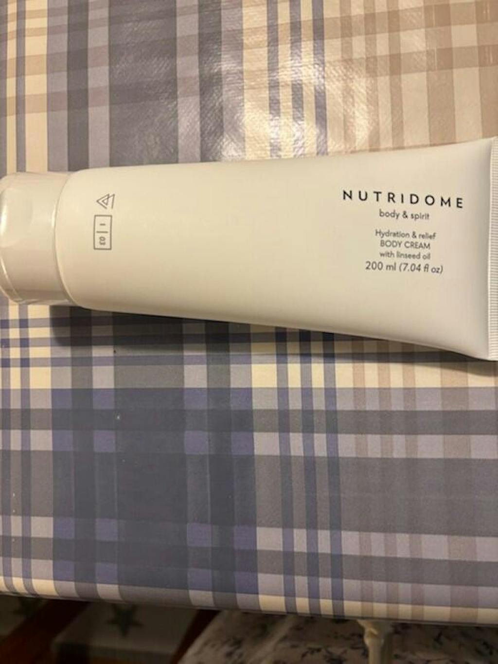 Körpercreme mit Leinöl Feuchtigkeits und Relief Nutridome ist eine Kosmetik, die perfekt Feuchtigkeits und regeneriert und regeneriert, die Haut weich und fest machen. Formel reich an Mikroelementen, Triglyceriden und Kasein Stellt Hautglanz und Elastizität wieder her.
