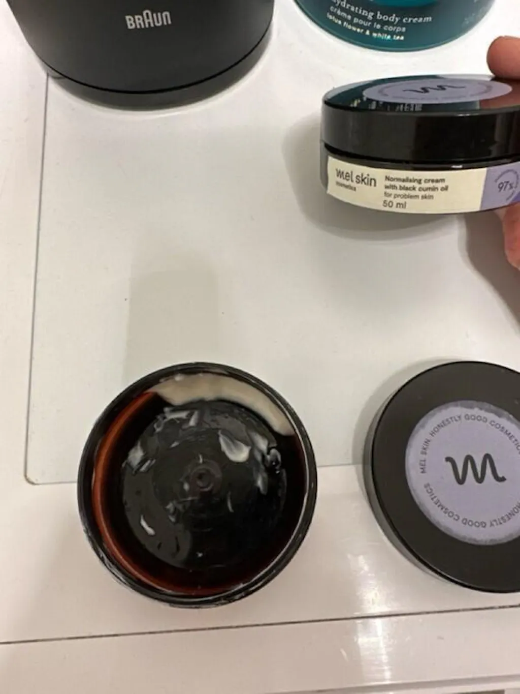 Gesichtscreme normalisieren Mel Skin Marke Enthält schwarzes Kreuzkümmelöl - auch genannt Ägyptischer Nigelle. Die Zutat ist seit Jahrhunderten von seinen Handlungen beeindruckt. Anscheinend hat er Cleopatra bereits in ihren Pflegeritualen begleitet. Es beruhigt Reizungen, reinigt und regeneriert die Haut. Die Creme hat Licht, samtige Konsistenz mit einem pflanzlichen Geruch.
