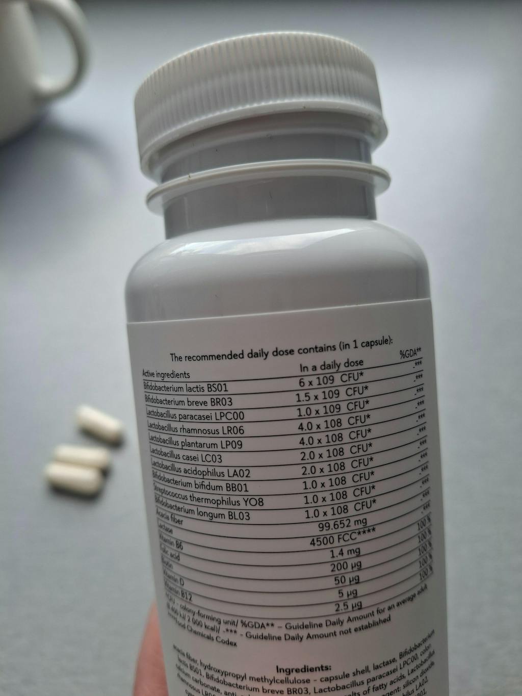 Nutridome Probiotic ergänzt die Ernährung mit Milchsäurebakterien und Akazienfasern . Die Tagesdosis enthält insgesamt 10 Milliarden koloniebildende Einheiten von Bakterien, darunter Lactobacillus- und Bifidobacterium-Stämme mit wissenschaftlich nachgewiesener Wirksamkeit. Das Nahrungsergänzungsmittel Nutridome PRO 10 BIOTIC besteht aus Inhaltsstoffen, die für die ordnungsgemäße Funktion des Körpers unerlässlich sind, die Darmgesundheit gewährleisten und für den richtigen Zustand der Haut sorgen. Vitamin B12 und Folsäure spielen eine Rolle bei der Zellteilung (einschließlich Hautzellen). Darüber hinaus unterstützen Folsäuren die ordnungsgemäße Synthese von Aminosäuren. Laktase verbessert die Verdauung von Laktose bei Menschen, die Schwierigkeiten mit der Verdauung haben. Vitamin B6 trägt zur Regulierung der Hormontätigkeit bei.
