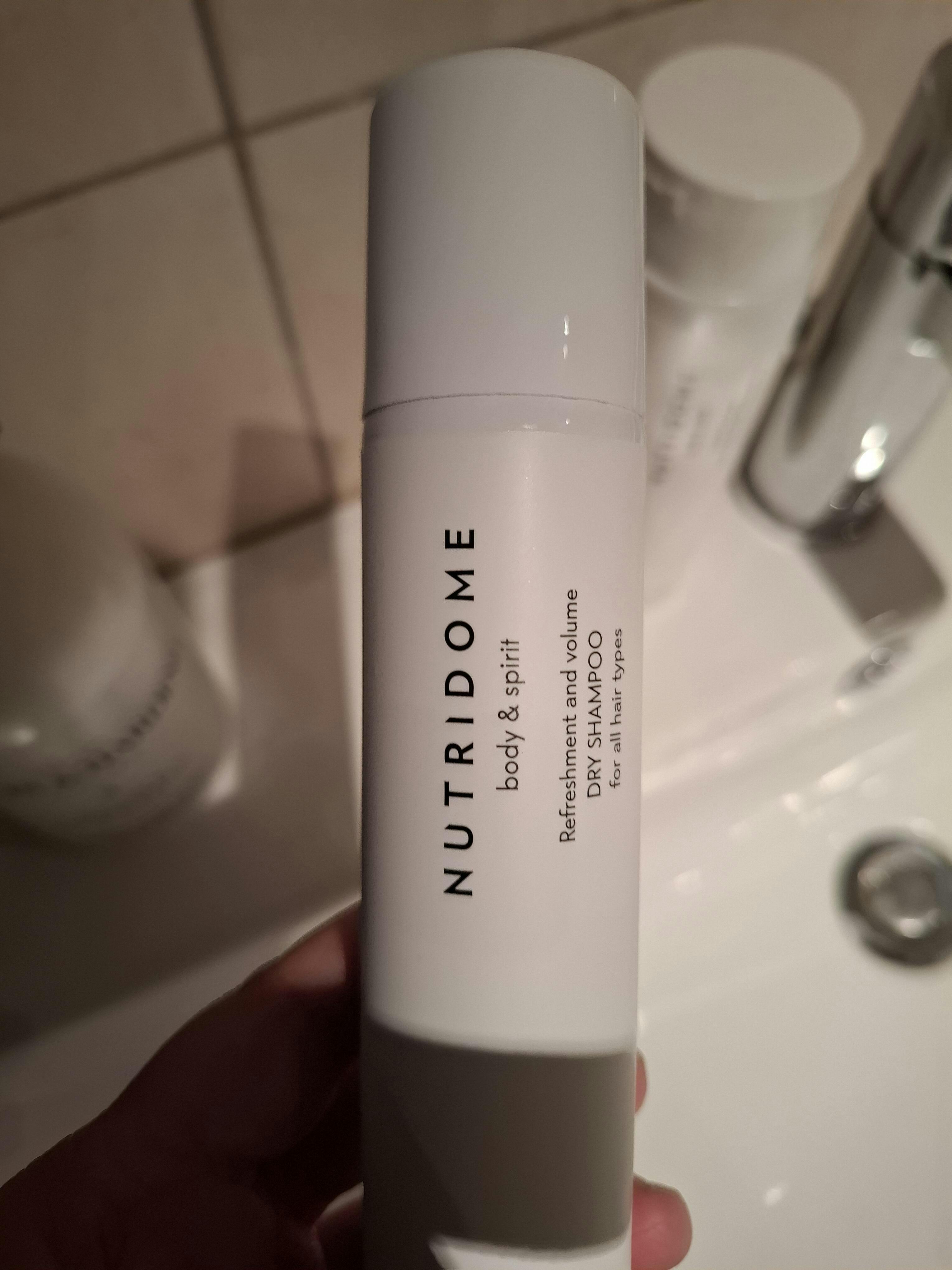 Effektiv und gut für alle Haartypen: trocken, beschädigt, ölig, hell oder dunkel. Kosmetik basierend auf Stärke mit sofortiger Aussaat Es reinigt und erfrischt das Haar. Entfernt überschüssiges Talg von ihnen. Es stellt effektiv Frische und Glühen wieder her. Nutridome Dry Shampoo hebt Haare an den Wurzeln anund gleichzeitig Fügt der Frisur Volumen hinzu. Eine kleine Flasche, in der es geschlossen war, passt in jede Tasche. Dank dessen können Sie immer ein trockenes Haarshampoo bei sich haben und sogar Ihren Freund retten.
